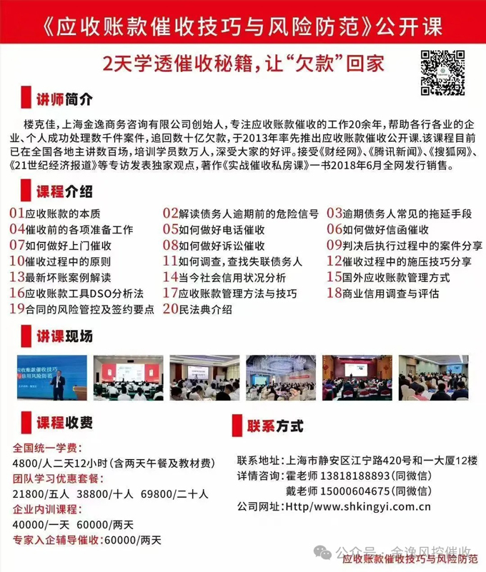 年末热销爆品【1天内训+1天调研辅导】《应收账款催收实战特训营》